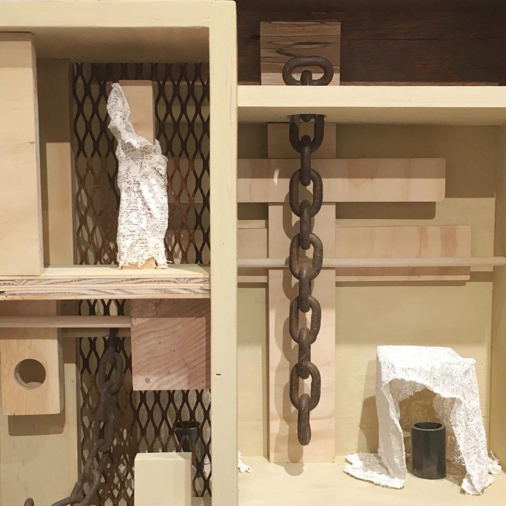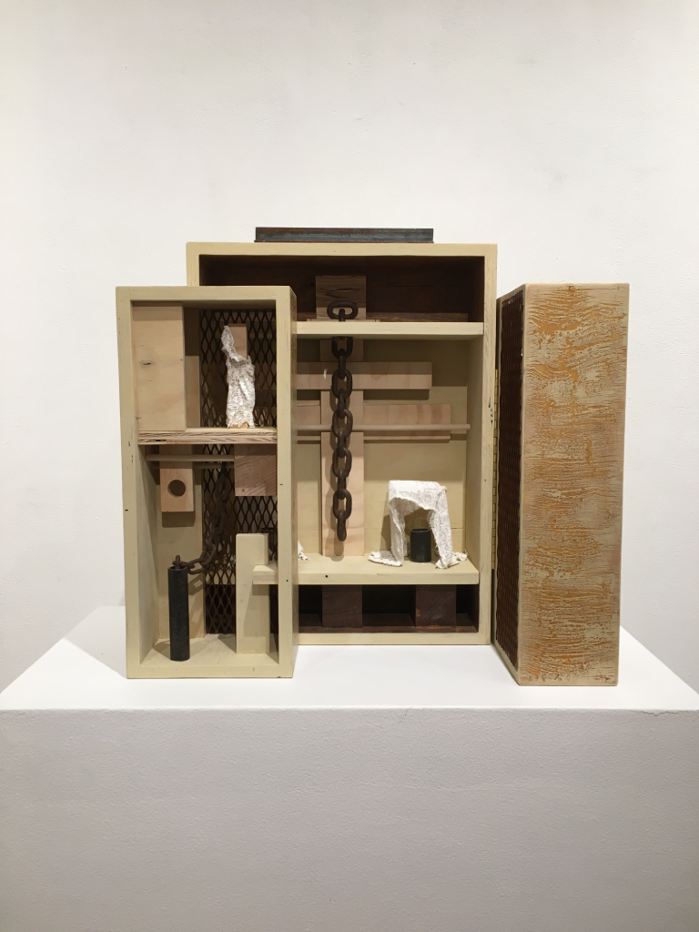 Triptych is a hinged three-part sculpture inspired by portable altarpieces and religious books. It is a formal study exploring how form, material, and space function within historical Catholic art.